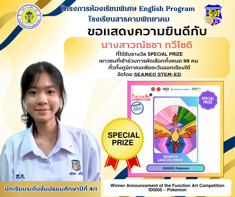 ขอแรงเชียร์ แรงโหวต ให้ตัวแทนเยาวชนจังหวัดมหาสารคาม นางสาวพิรดา พัฒนประสิทธิ์ชัย (ต้นข้าว) นักเรียน ม. 6/1 โครงการ English Program โรงเรียนสารคามพิทยาคม ในการเข้าร่วมการประกวดเยาวชนต้นแบบเก่งและดี TO BE NUMBER ONE IDOL รุ่น 11 (ระดับประเทศ) ให้ผ่านเข้ารอบ 16 คนสุดท้ายด้วยการแชร์โหวตให้กำลังใจ ที่หมายเลข 1900-1900-94 กด 06